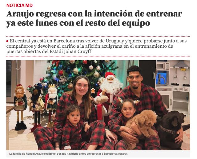 《世界体育报》指出,巴萨的圣诞假期结束,本周一,巴萨全队回归训练。阿劳霍也将回到约翰-克鲁伊夫球场,在6000名球迷面前参加训练。 巴萨2026年的首战,将是1月3日的西甲第18轮,客场挑战西班牙人。不过,阿劳霍很可能赶不上这场西甲之战。《世界体育报》表示,阿劳霍希望逐步恢复身体、心理的双重受伤,直到感觉完全康复。