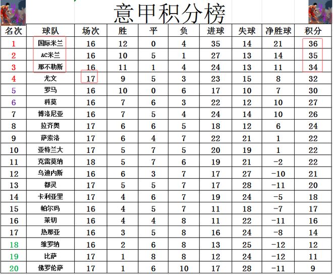 意甲最新积分战报争冠3强齐赢球!国米1分优势压AC米兰夺回榜首