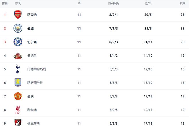 利物浦连续6场联赛输掉了5场,排名不断下滑,已经下滑到现在的第8名。英超争四格局非常混乱。热刺、阿斯顿维拉、曼联、利物浦和伯恩茅斯都是18分,排名第5到第9。这5支球队距离欧冠区只有1分的差距。第4名的是桑德兰,拿到19分。