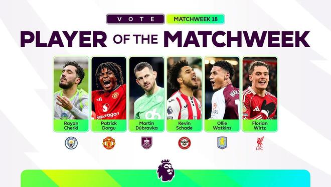 | 北京时间12月29日,英超官方公布了联赛第18轮最佳球员候选名单,这6名球员为谢尔基、多古、杜布拉夫卡、沙德、沃特金斯、维尔茨。